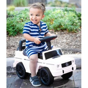 Officially licensed Mercedes G-Wagon Push car  omes with under the seat storage, steering wheel with music and horn sounds & strudy back rest. Best for ages 1-3 years This item does not qualify for free shipping. Additional shipping costs will apply due to the size/weight of the item.