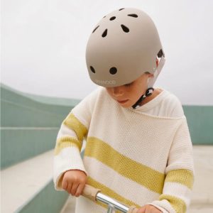 The Banwood Eco Helmet combines safety and sustainability, made from durable ABS recycled materials with a protective foam lining. Lightweight at 355 g, it features a dial-fit adjustment system, recycled chinstrap, and ventilation for comfort. Designed for ages 3+ and is CE-certified for reliable protection. Size adju