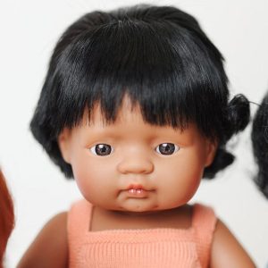 Miniland doll with Hispanic features. This doll belongs to our Miniland Dolls collection that promotes the value of equality within kids regardless of their origin, gender or condition and allows them to also learn about the diversity in all of us and how to develop social skills such as empathy and tolerance. This dol