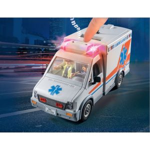 Grab your stethoscope and head to the rescue with the Ambulance from PLAYMOBIL. This amazing set features an ambulance with siren sounds and opening back door with space for a stretcher. Easily access the ambulance's interior thanks to the removable roofs. The vehicle has various compartments for storing all the necess