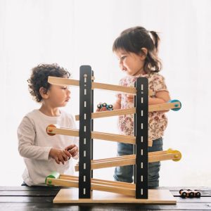 They’ll be off to the races with our Fast Track.  Brightly painted with non-toxic paint and 5 natural wood slopes let the races begin.  Includes 4 race cars for independent play or with friends. Ages 3+ Material: Plywood Care Instructions: wipe clean with damp cloth PLEASE NOTE: There is a shipping fee associated with