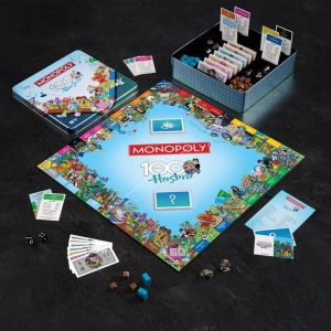 Childhood memories come to life with all of your favorite brands in this MONOPOLY edition celebrating Hasbro’s 100th Anniversary! This homage includes Hasbro brands from the past 100 years, dating back to the nostalgia of TINKER TOYS and TONKA, to classics such as BABY ALIVE and BATTLESHIP, to modern favorites like MAG