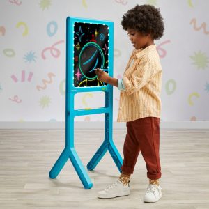 The Discoveryâ„¢ Glow Easel Dual-Sided Art Station is a dynamic and innovative art tool designed to ignite the imaginations of young artists. This dual-sided easel offers a traditional drawing experience on one side and an exciting illuminated light board on the other, allowing children to explore their creativity with m