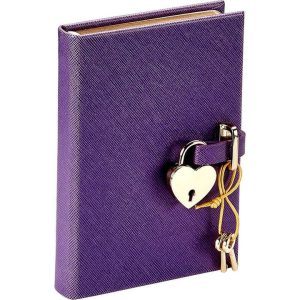 This elegant diary features a fully functional heart lock with key so you can keep your secrets locked away. Includes 240 lined cream-white, acid-free archival pages with gilt edges and a double-faced cream satin ribbon marker. Saffiano Hard cover diary with squared corners Smyth-sewn for strength and longevity 240 lin