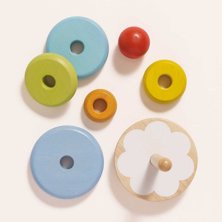Good old-fashioned fun awaits with this nostalgic wooden rainbow stacker toy. Painted in cheerful rainbow hues, this sustainable treasure comes with a base and 6 stackable parts. Ready to brighten up any little one's play session! Young learners can stack the rings on top of one another to make a tower, a great aid to