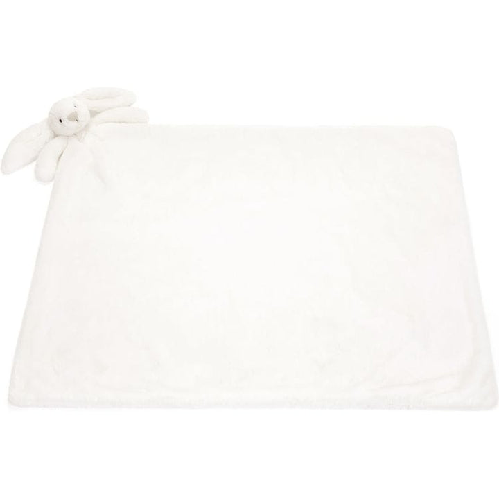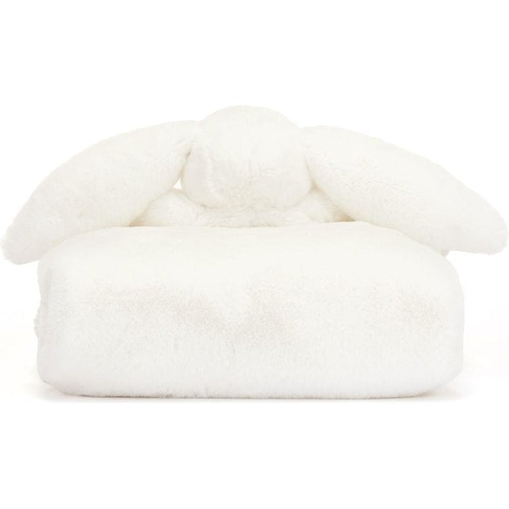Bashful Luxe Bunny Luna Blankie is a gorgeous large blanket with bunny head and arms in luxuriously soft white fur. A soft spot for resting or for tummy time, this blankie is tied with a grosgrain printed ribbon, and presented in an elegant Jellycat gift box with note card and envelope. An indulgent gift for a new arri