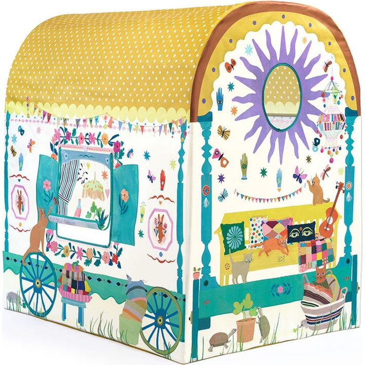 A dream house, even for grown-ups! With windows and a door that closes, this big, flowery playhouse with its little animal visitors is the perfect place for children to play! Includes: 1 printed polyester canvas with 3 windows and 1 door, plastic rods and 1 set of assembly instructions. Lightweight and spacious. Very e