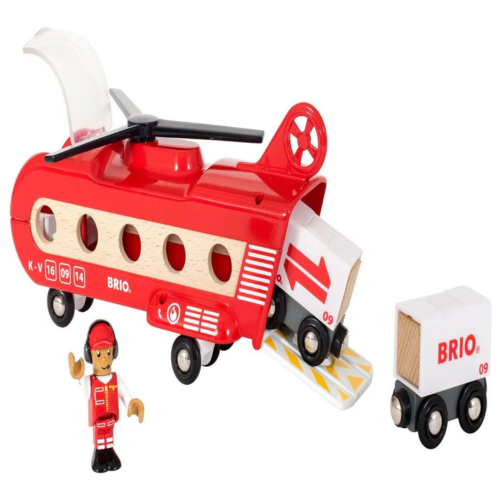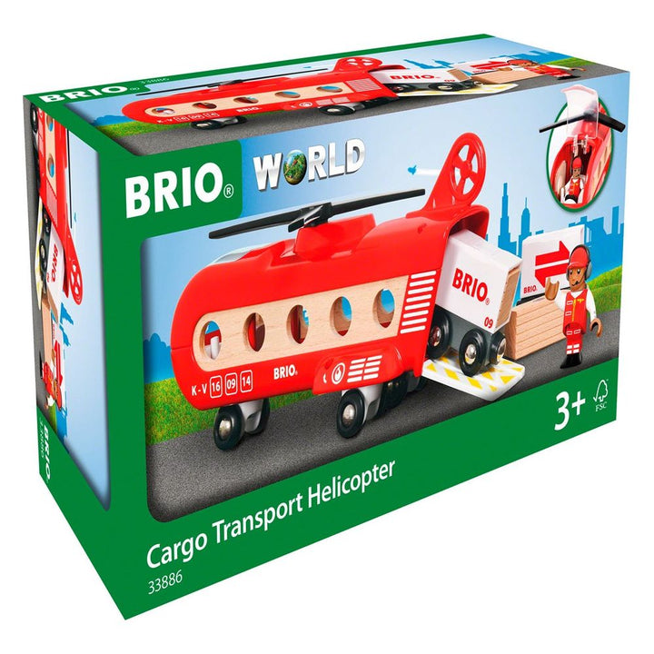 There’s no cooler way to fly than by helicopter. Behind the pilot in the new Cargo Transport Helicopter toy, the cargo bay is ready to carry some serious weight – even two fully loaded wagons. With everything in place, spin the rotor of your BRIO helicopter, take off and soar high above your BRIO World. BRIO Trains, En