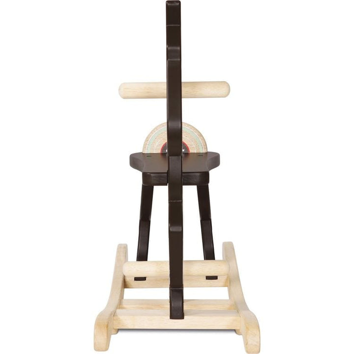 A traditional sturdy rocking horse made from sustainable rubberwood and plywood. Artwork features detailed horse and reins design, glitter and golden paint. Develops toddler’s mobility and balance skills through play. Ages 12M+ Material: 99% Rubberwood, 1% Steel This product is a toy. Remove all packaging and keep for