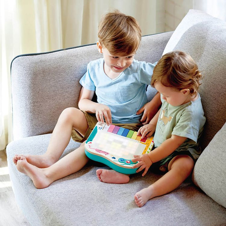Elevate fine motor skills and hand-eye coordination as little fingers dance across the responsive piano keys. Each press is a sensory delight, enhancing their tactile perception. COLOUR RECOGNITION: Ignite your child`s imagination through a spectrum of rich, eye-catching key colours. The pixel art introduces them to a