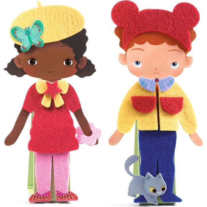 Allows your child to design outfits and styles for 12 characters – 6 boys and 6 girls. With elements of self-adhesive felt, stickers and crystals, each character can have a unique look that reflects the imagination of the toddler. By choosing and matching outfits and accessories, the child exercises precision, percepti