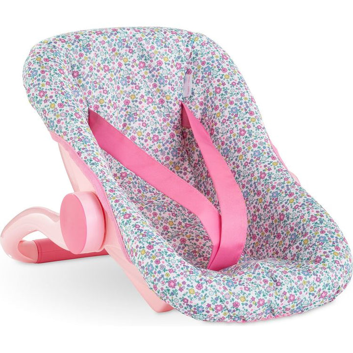 Ideal for make-believe moms and dads on the go, Corolle's Floral Baby Doll Carrier comfortably fits a 14- to 17-inch Corolle baby doll. Lightweight yet sturdy and styled like those for real babies, it features security straps and a handle that adjusts to three different positions to carry, gently rock or keep baby doll