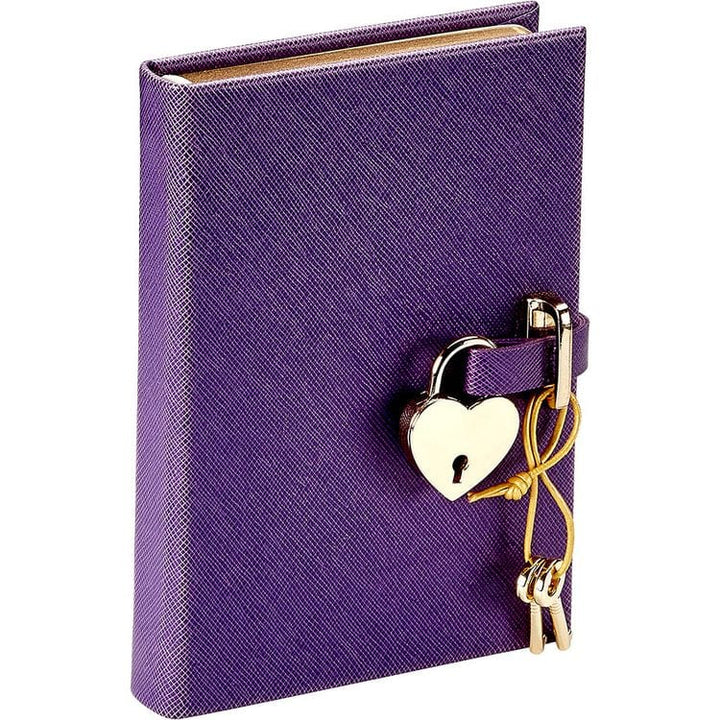 Heart Lock Journal in Purple Saffiano Leather