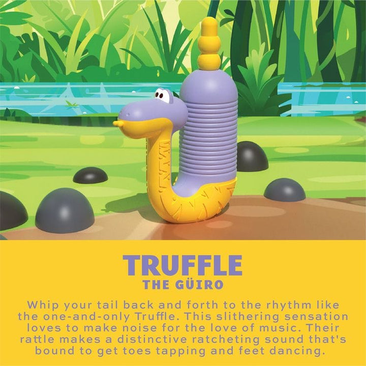Introduce your toddler to the rhythmic world of music with the FAO Schwarz® Jungle Drum 5-Piece Instrument Set. Each instrument in this playful set is inspired by a different wild animal, making music time an exciting and educational jungle adventure. The set includes a drum (body and lid), a zebra-shaped maraca, a pea