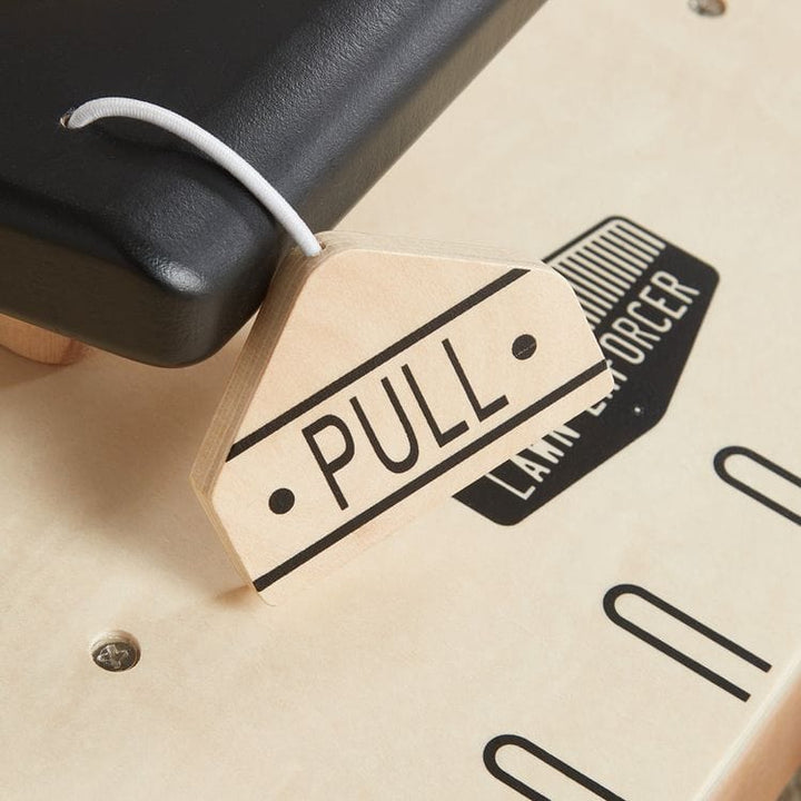 Your little landscaper will love our Lawn Enforcer! They can release the gas cap and fill with pretend gas, then pull the ripcord to start the pretend engine. Turning knobs and chunky wheels add to the charm of this fun mower. The front wheel clackers make sounds when pushed while mowing the carpet in the playroom,