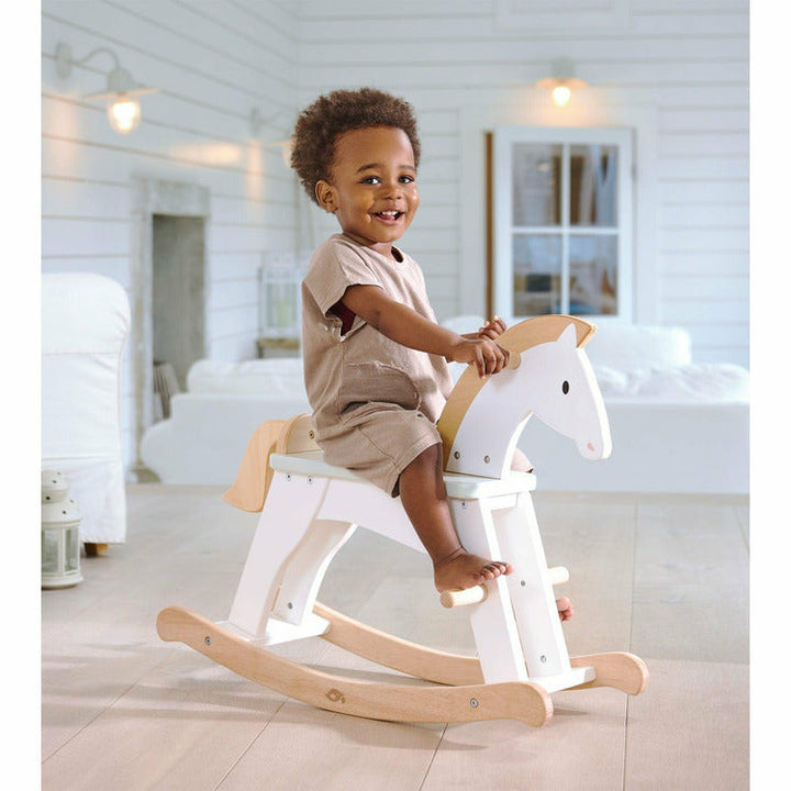 Gallop through the snowfields on your lucky horse. A premium rocking horse inspired by the classics. A traditional and essential toy for the nursery or playroom. Simple and chic, painted in white with details in wood. CLASSIC CHARM – Bring classic charm to your little riders’ make-believe adventures with our beautifull