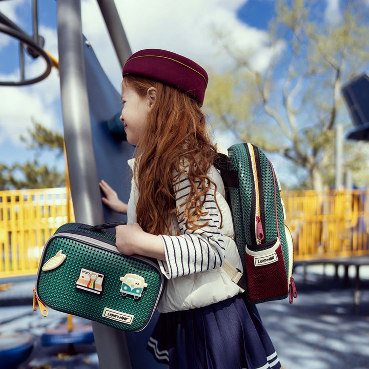 The insulated lunch tote keeps food hot or cold and is easy to carry with you to school. Insulated to keep food hot or cold Easy to carry handle Name tag Buckle to clip lunchbox onto your bag Fits most containers and bento boxes. Fits into all of our backpacks except the little miss Size: 10" W 7" H X 3.5" D + Contents