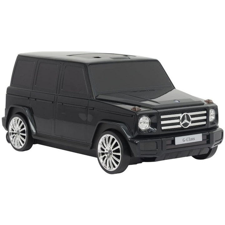 Officially licensed two-in-one Mercedes Benz G-class suitcase that can be used as both a suitcase and a ride-on push car. The large storage space is located in the car-look trunk and is reached by tapping the front car logo for storing carry-on luggage. By unlocking the top handle, it is simple to transform into a ride