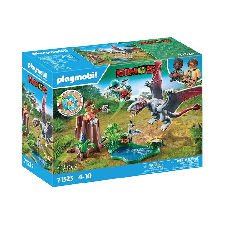Step into the world of dinosaurs with the Observatory for Dimorphodon. Hidden within the hollow tree stump, the dino researcher observes the Dimorphodon while it searches for food. Using the flexible drone with camera, he captures close-up shots without disturbing the large flying reptile. Then it is time for him to ex