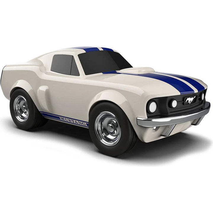 Discover the magic of American cars with the Racing Car Ford Mustang Ivory White, an officially licensed Ford replica. You can almost hear the engine purring! Capturing the charisma of the 1966 Mustang, this small car is a true gem for car enthusiasts of all ages. After the Racing Car Mustang Blue with white stripes, w