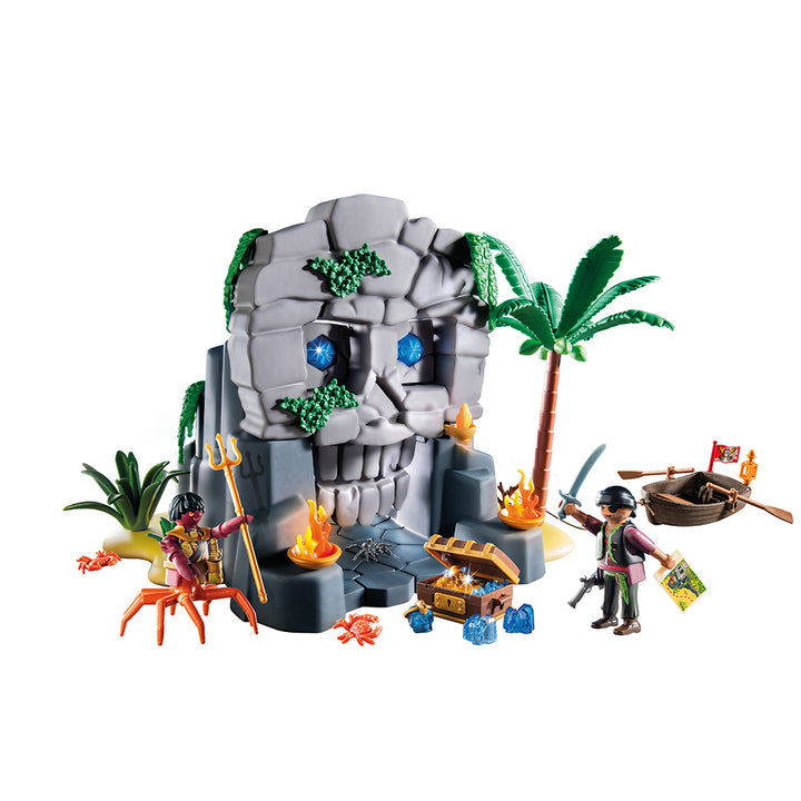 Which brave pirate dares to venture onto the mysterious PLAYMOBIL Skull Island? A valuable treasure is said to be hidden here. However, those who want the gold and crystals must first get past the lightning-fast Crab Deeper. And it's not the only obstacle because the treasure chest is located in a creepy skull cave, se
