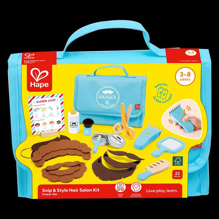 Give your little one the ultimate hairstyling experience with the Hape Role Play Snip & Style Hair Salon Kit! This fun and interactive pretend play hairdresser set is perfect for inspiring creativity and imagination. It includes a variety of realistic styling accessories, allowing kids to explore their passion for