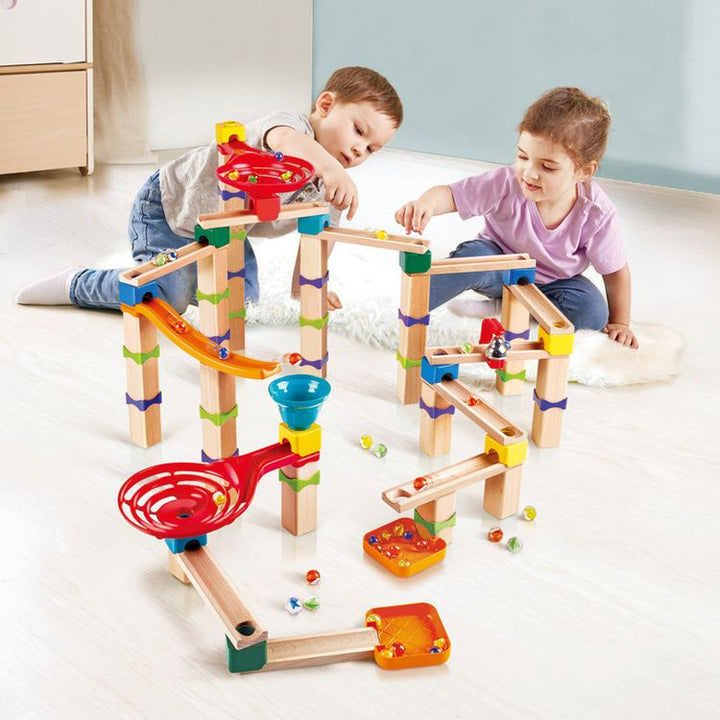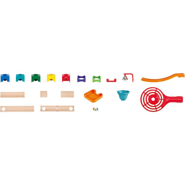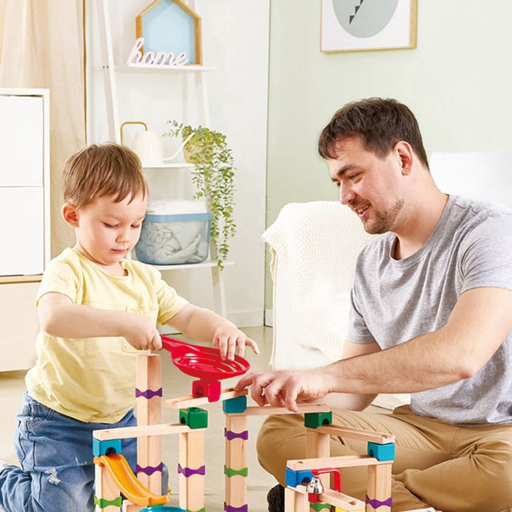 Have a fun, exciting time while teaching your child about planning and building with the Hape Marble Mayhem DIY Marble Racetrack. With all the materials you need to make an exhilarating, speedy race for hours of enjoyment. Build the track yourself, however, you wish with all the included pieces. The set features blocks