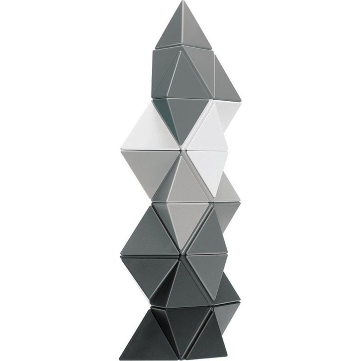 Black, grey and white scale pieces make up the monochromatic set which comes with 36 pieces includes: 6 octahedrons, 12 tetrahedrons, 12 half-tetrahedrons, 6 eyes (in total 36 pieces) + Leaflet + Limited Edition "Inspiration Book" With a large set you can either build one large construction or several smaller ones and