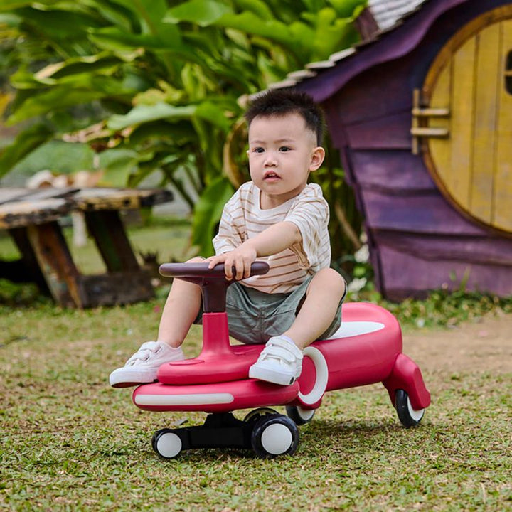 Maximum fun is guaranteed with the Wiggle & Giggle Car. The board moves by shifting body weight helping children enhance balance and coordination plus the LED lights and 8 songs add an educational twist. The silent wheels ensure a smooth, safe ride and with no assembly required, just open and ride! Cautions : Prote
