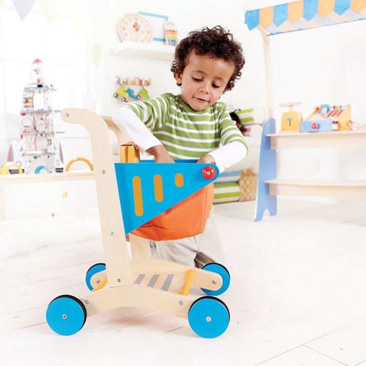 What should we buy today? Transport whatever fits in this handy carrier. Role play with your child as you "shop" through the house. Use the basket to carry toys . Boosts coordination, balance, and physical strength. Hours of creative fun play will result. This toy requires adult assembly. Durable child safe paint finish
